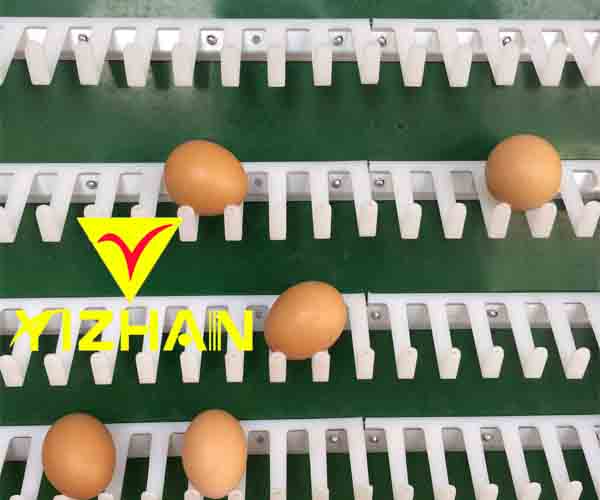 集蛋的勞動(dòng)量約占養(yǎng)雞總勞動(dòng)量的20%,使用機(jī)械集蛋可比人工撿蛋提高生產(chǎn)效率3-4倍。自動(dòng)化集蛋設(shè)備的工作原理是:由縱向水平集蛋帶將雞蛋送往雞籠一端后,再由各自的垂直集蛋機(jī)將幾層雞籠集中到一個(gè)集蛋臺(tái),由人工或吸蛋器裝箱。